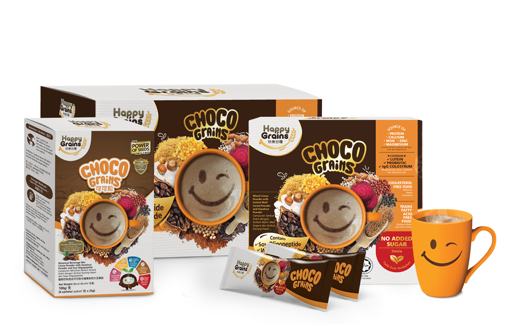 Top quality ingredients are used for our sugar free health drink and is specially selected and concocted expertly by our nutritionists to ensure optimum nutritious value and great taste in every cup of Happy Grains.