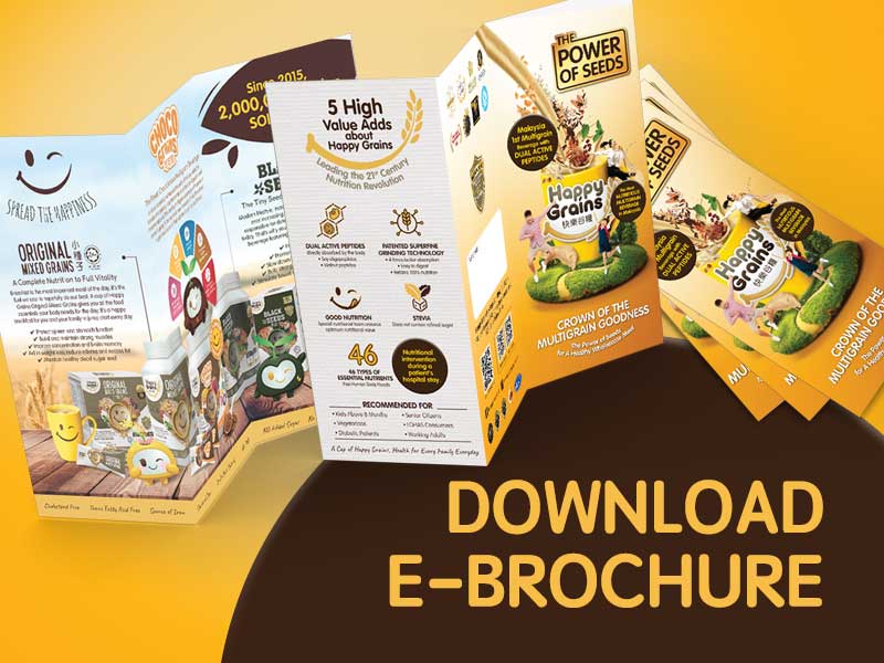 Enjoy our nutritious beverages for a healthy boost to accelerate your day! Give your body all the nutrition it needs for the day. Happy Grains is power-packed with grains and seeds that contain 46 types of essential nutrients that kids and adults need including minerals, vitamins, fibers and proteins. Carefully selected and concocted by our nutritionists and using the latest grain-refining technology in achieving its ultra-fine state, Happy Grains puts the power of seeds in your hand in the form of a delicious cup of beverage.
