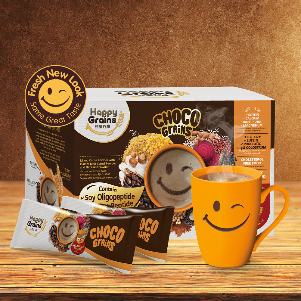 Top quality ingredients are specially selected and concocted expertly by our nutritionists to ensure optimum nutritious value and great taste in every cup of Happy Grains.